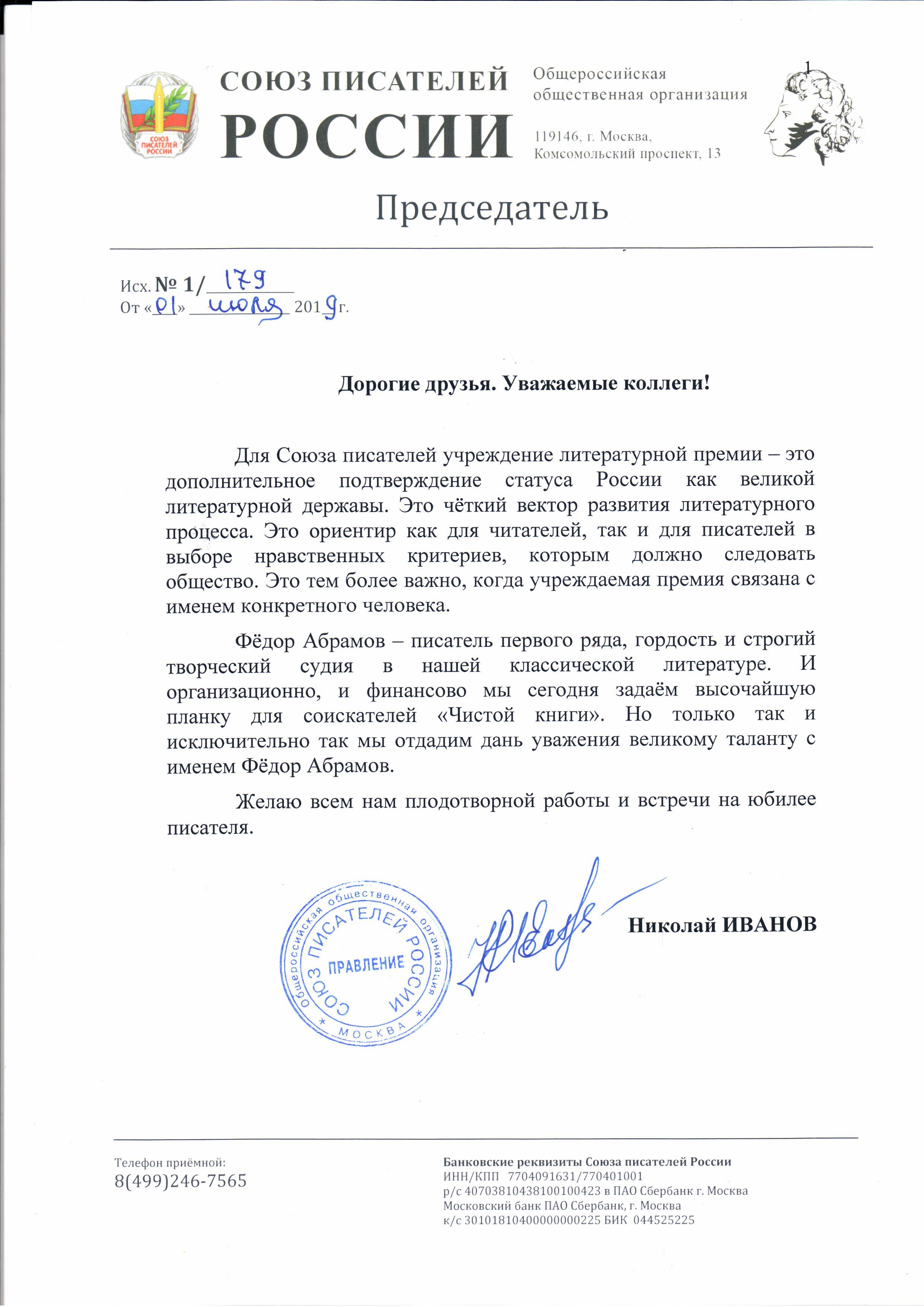 Организационный комитет объявляет о начале конкурсного отбора на присуждение Всероссийской литературной премии имени Фёдора Абрамова «Чистая книга» (далее – премия).