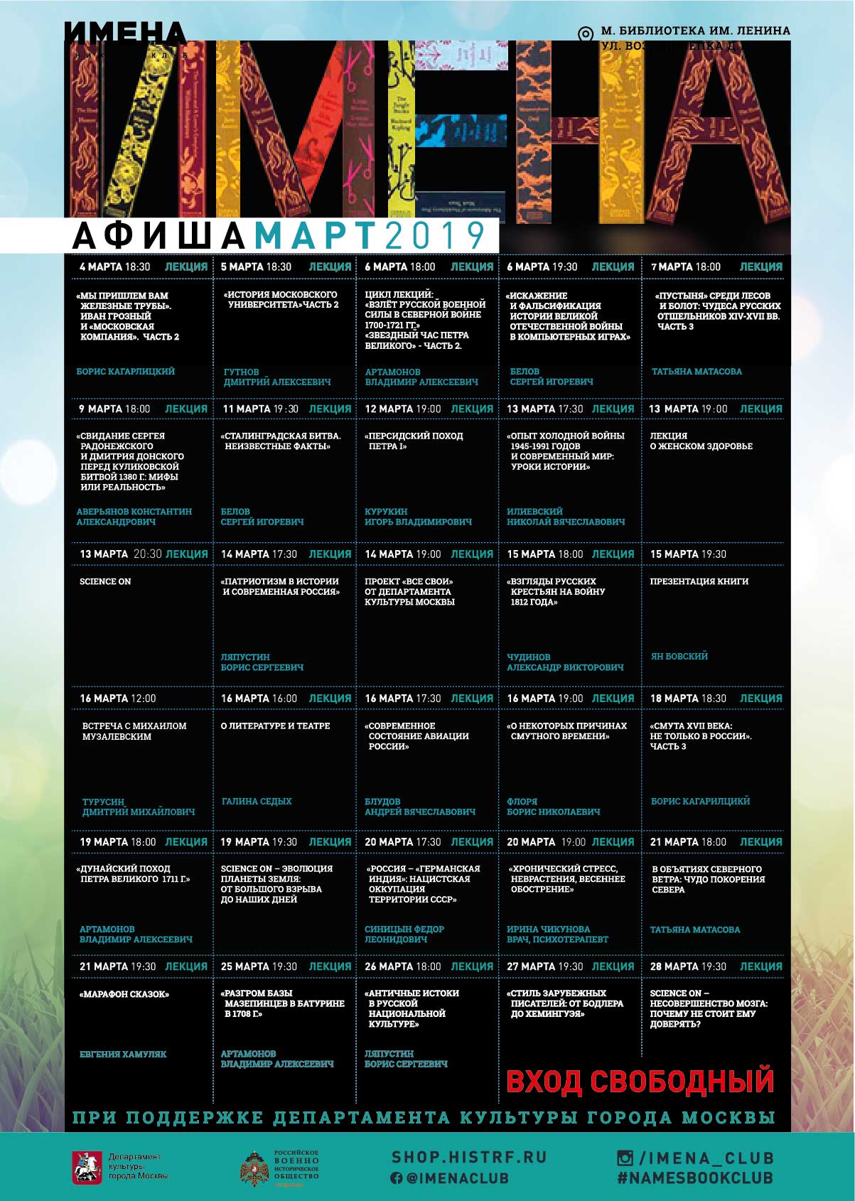 6 марта в 18:00 в Книжном Клубе «Имена», по адресу улица Воздвиженка дом 1, в рамках проекта РВИО «Эхо наших побед», который проходит при поддержке Департамента Культуры Москвы, состоится встреча с российским историком, кандидатом исторических наук, старшим сотрудником института российской истории РАН Артамоновым Владимиром Алексеевичем.