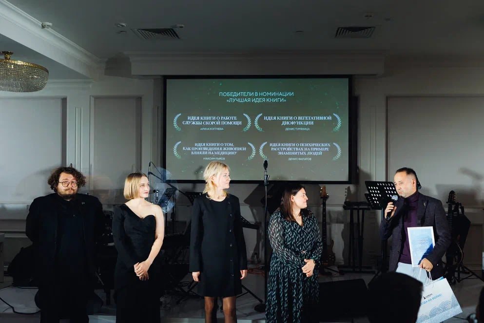 — Максим Рыков с идеей книги о том, как произведения живописи влияли на развитие медицинской науки, и Денис Филатов с идеей книги о психических расстройствах на основе клинических примеров заболеваний знаменитых людей. Книги будут выпущены в издательстве «БОМБОРА».