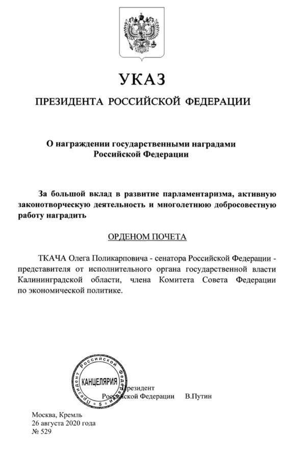 Поздравляем Вице-президента РКС Олега Ткача с награждением Орденом Почёта!