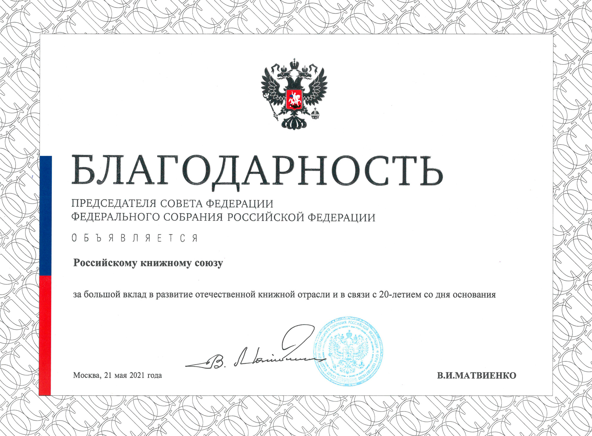 В 2021 году Российский книжный союз отметил свой 20-летний юбилей.
