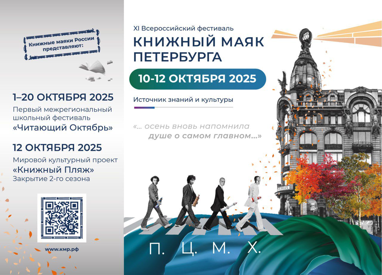 XI-й Всероссийский фестиваль «Книжный маяк Петербурга. Источник знаний и культуры» пройдет с 10 по 12 октября 2025 года. Состоится более 90 мероприятий, в том числе в школах. Все события фестиваля нацелены на развитие интереса взрослых и подростков к творчеству классиков и современных писателей, к книгам. Пройдут встречи, круглые столы, автограф-сессии. «Наша стратегическая цель, чтобы 80% россиян читали более 12-ти книг в год и посещали общедоступные библиотеки и иные книжные точки своего города каждый месяц», - говорит инициатор фестиваля, президент Фестивального движения «Книжные маяки России» Денис Котов.
