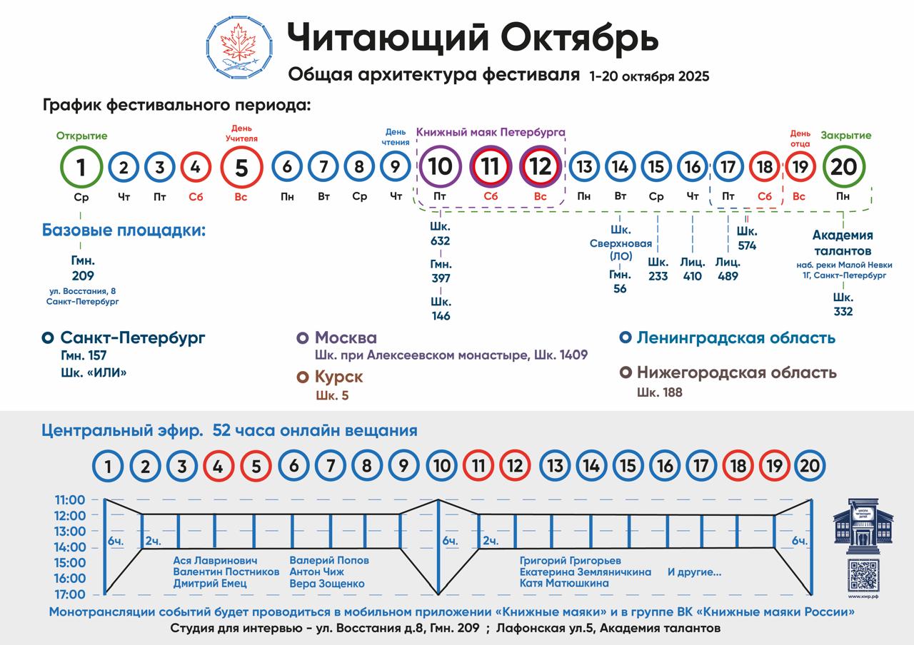 Особой «фишкой» фестиваля станет соединение «Книжных маяков» в школах с проектом «Читающий октябрь», который впервые проходит с 1 по 20 октября 2025 года в партнерстве с «Академией талантов», при поддержке комитета по образованию и является стратегической инициативой фестивального движения «Книжные маяки России».